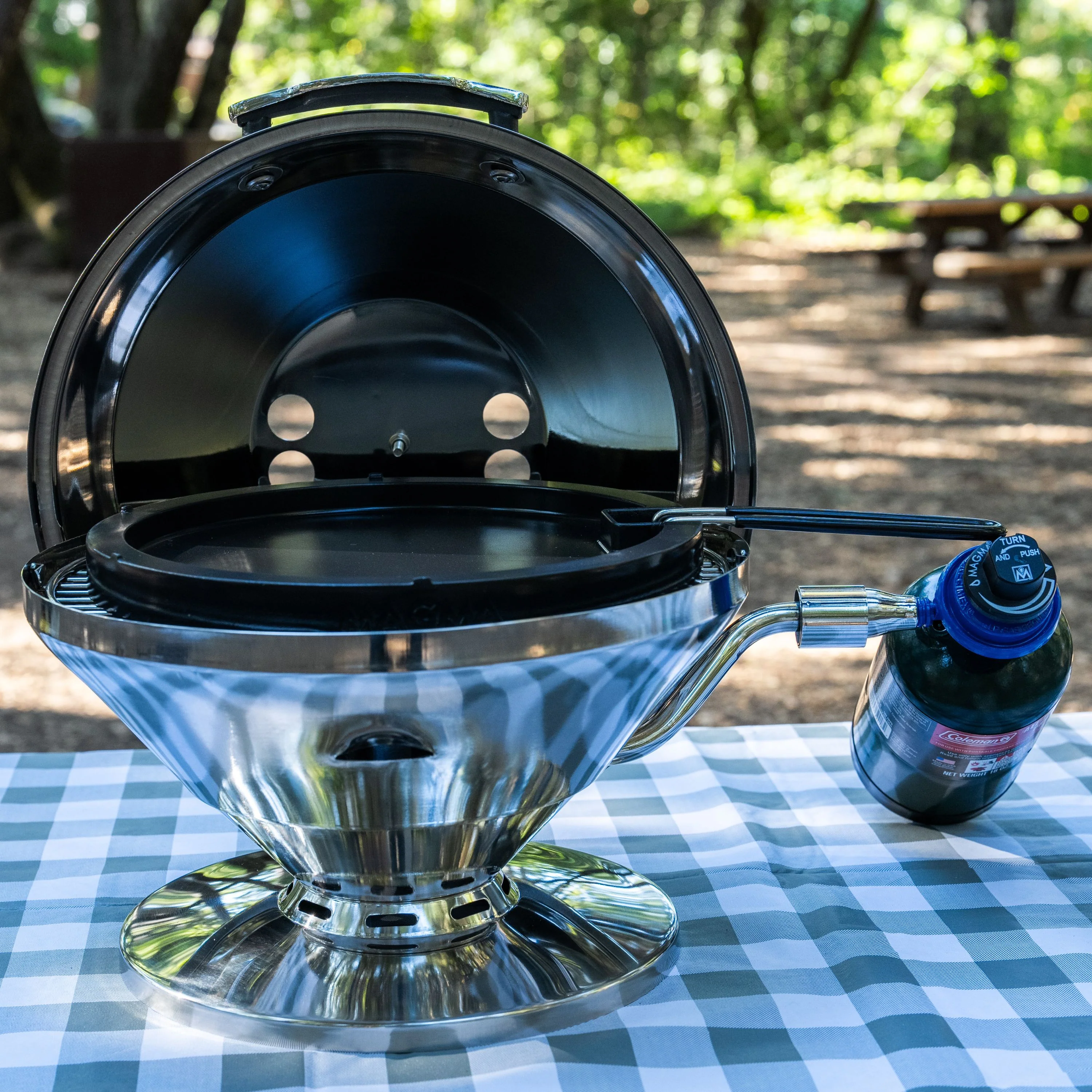 Take charge of mealtime and serve like a pro with a Magma Non-Stick Griddle. This 11-3/4" (29.8 cm) Dia. griddle is designed for use on a 13" diameter kettle or larger grilling surface and is constructed of cast aluminum and feature a non-stick coating for effortless meal preparation and clean up. Reversible, the griddle is ideal for breakfasts with family and friends; flip it over and you’ve got a grill for cooking sizzling meats and veggies. A deep drainage channel on the grilling side keeps the grease away from the cooking surface; while the griddle has a high tapered rim to keep the food on the griddle and reducing the amount of cooking mess. A removable, rubber coated, stainless steel handle lets you cook and serve with ease. Dishwasher and oven safe to 400°.