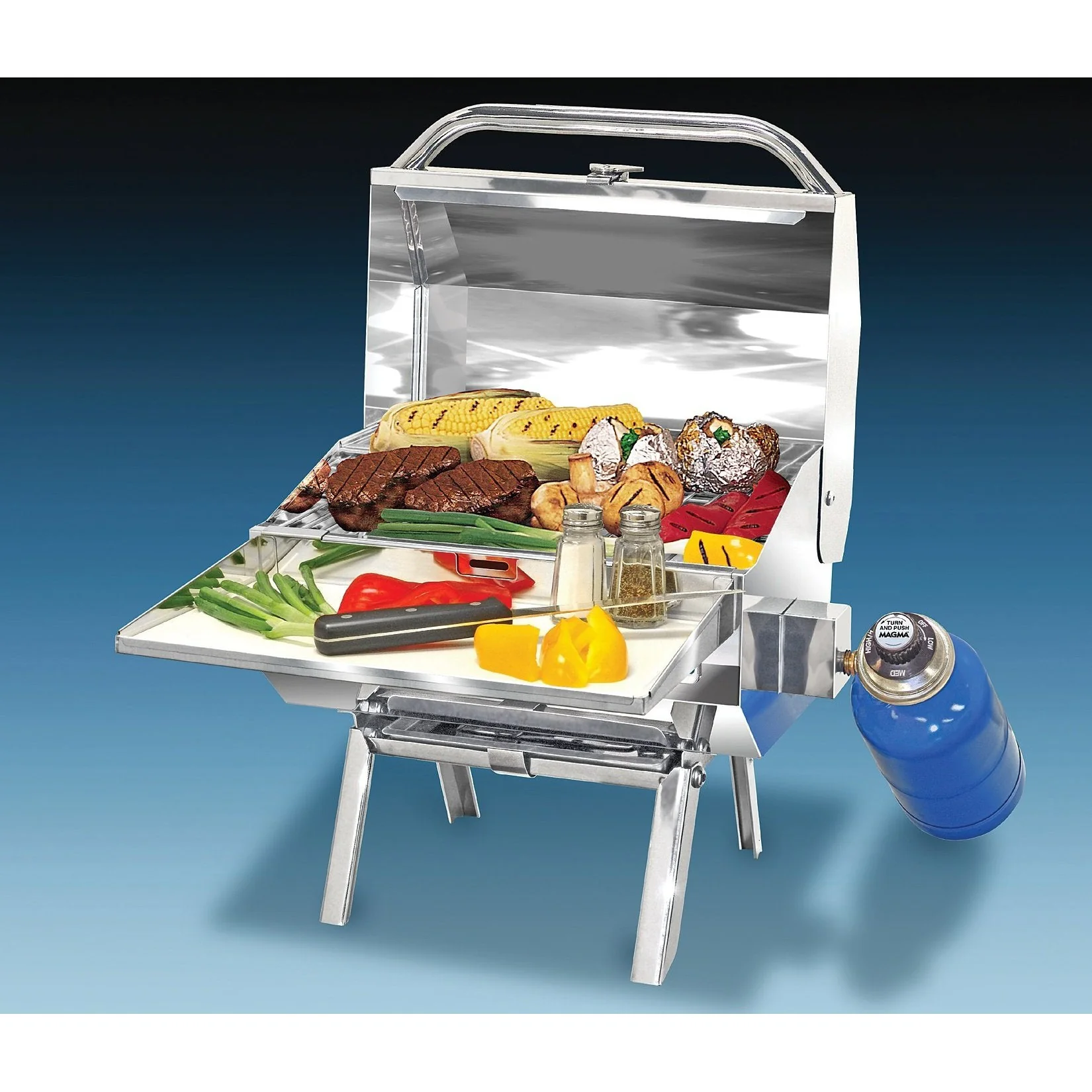 The compact TrailMate is perfect for any small crew or gathering. With its fold-away legs this grill has the go-anywhere capability to enhance your outdoor activities on-board or on-shore, especially during barbecue outings. Engineered to the same quality standard as our larger grills yet priced for the boater who doesn’t want to substitute quality for cost. This 9” x 12” grill has 108 Sq. In. of grilling area, is constructed entirely of 304 mirror polished marine grade stainless steel, and is wind tested for even heat distribution for years of dependable service. The swiveling control valve/regulator, designed to use 1lb. disposable propane fuel canisters, allows for quick, safe fuel canister exchanges or easily adapt grill to existing on-board low pressure propane (LPG) or natural gas (CNG) fuel systems. Model uses single mount mounting hardware only. Magma offers the largest selection of mounting options (sold separately) to customize the grill for your needs. Fuel canister and serving tray not included.